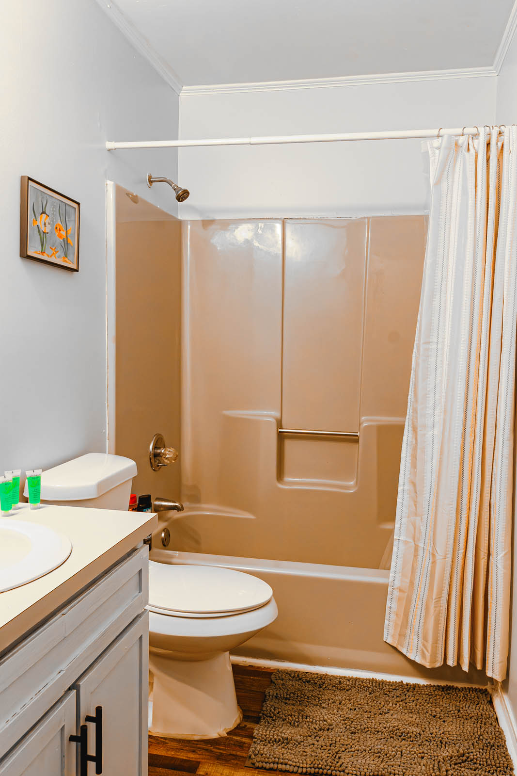 Master bath has shower and full bathtub.