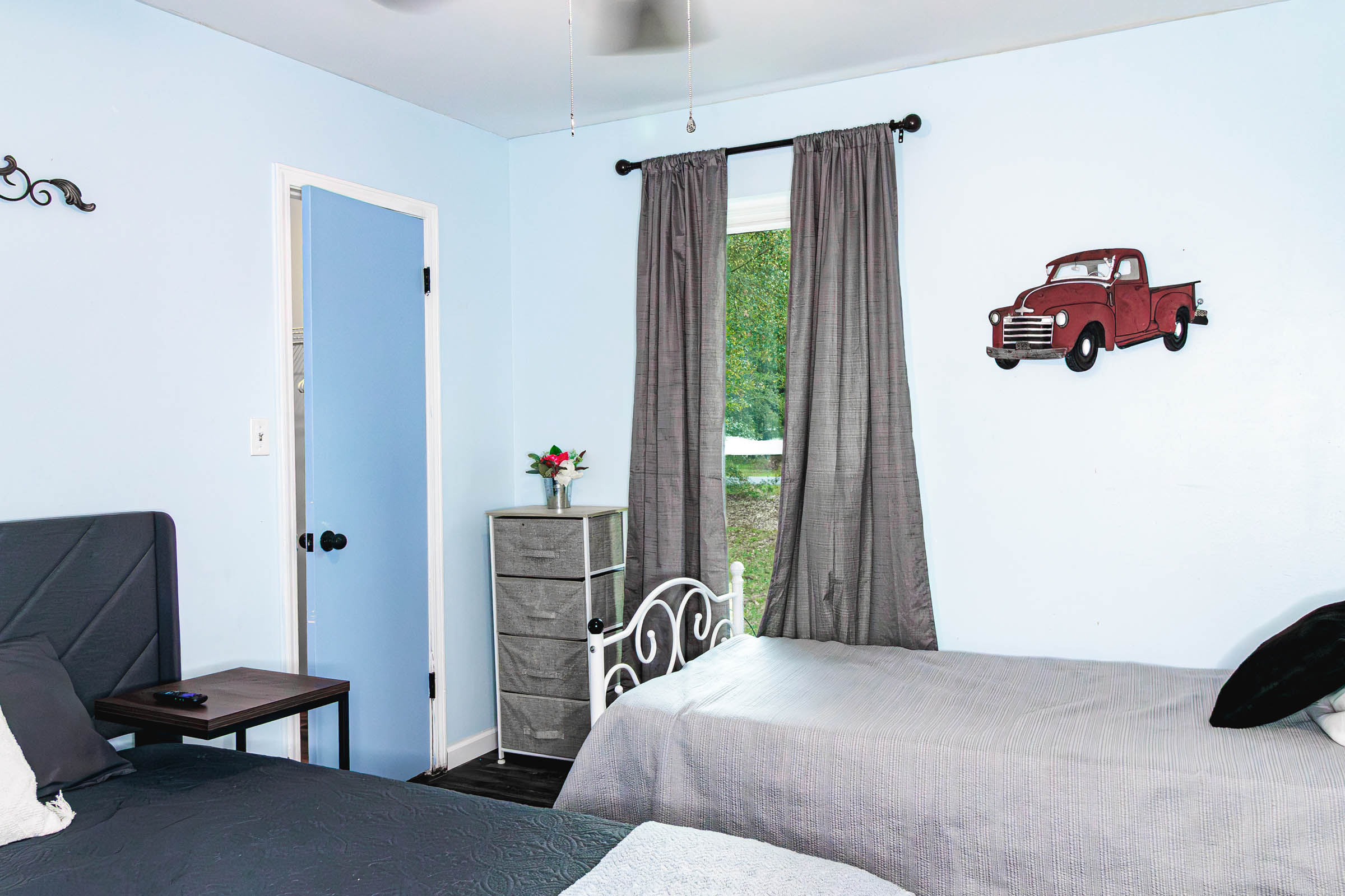 2nd bedroom includes a queen bed and a twin size bed