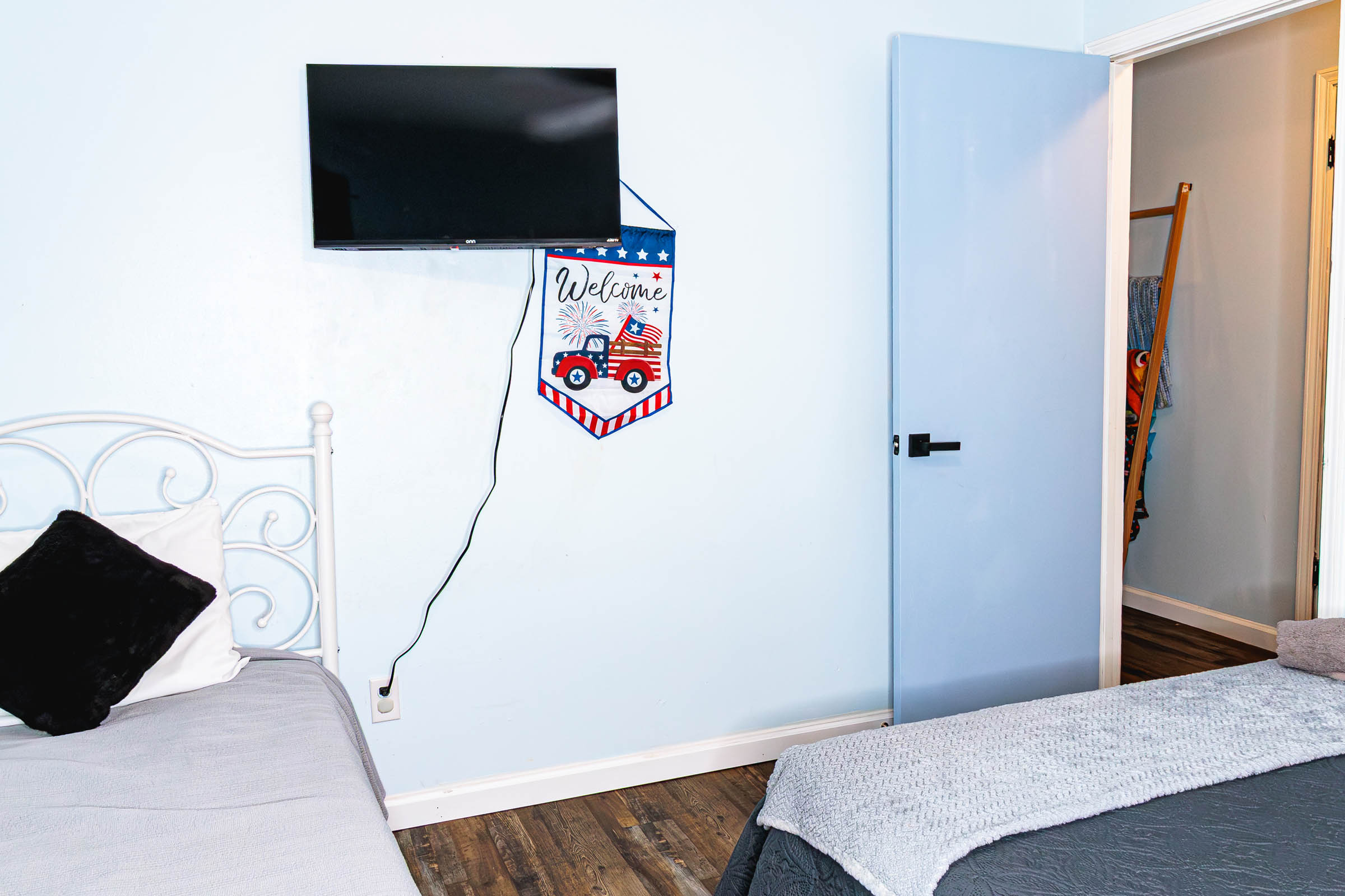 3rd bedroom has a queen bed, with fold up pack and play in the closet.