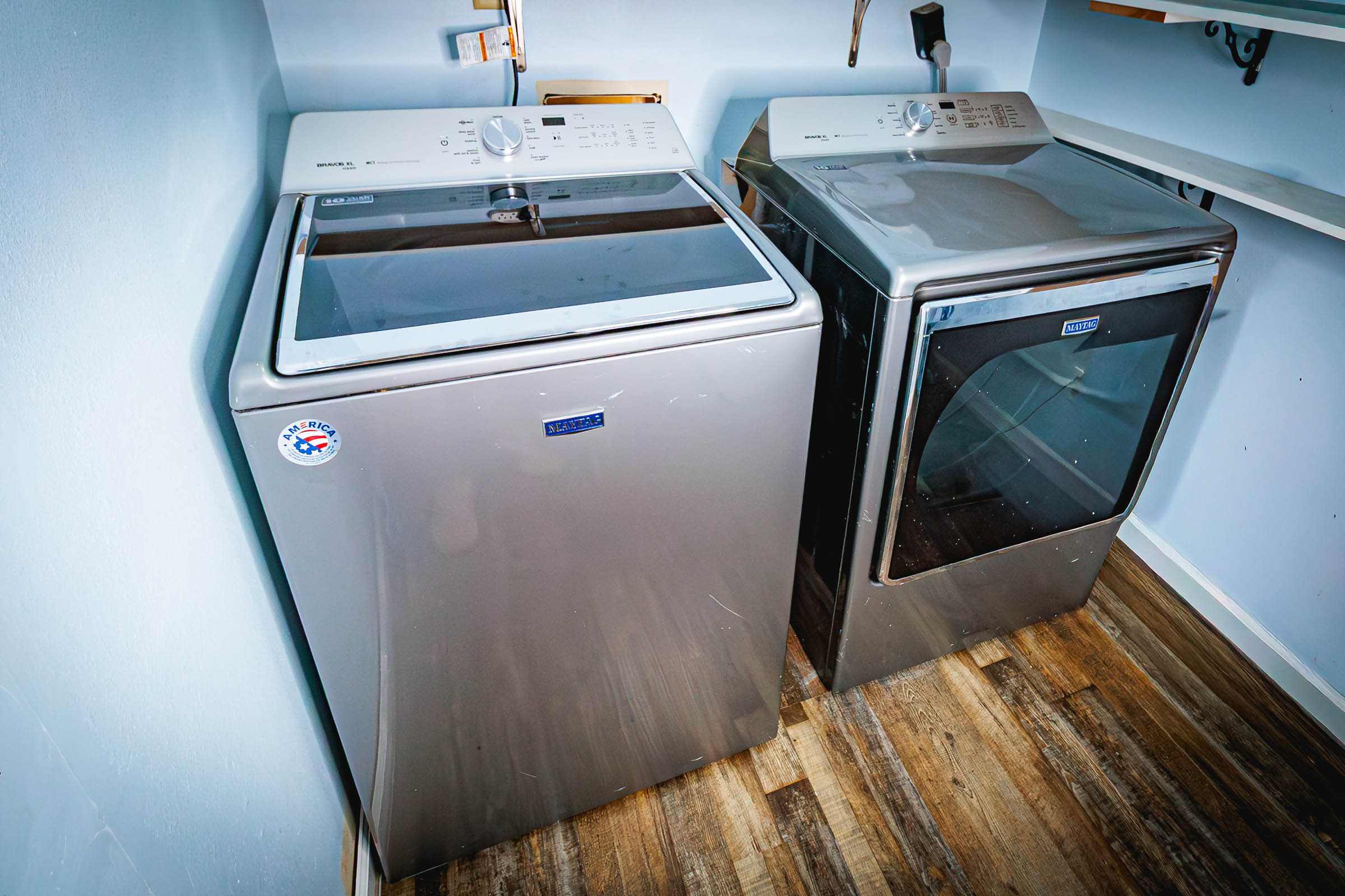 The WiFi is vzw high speed internet, the home is equipped with 4smart tvs, an electric fireplace, Central heat and air, on site laundry, automatic garage door, ice and filtered water dispenser, Roomba vaccuum and iRobot mop, electric desk and headboards with built in usb chargers -high tech extras for your comfort.